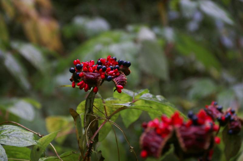 絶滅危惧種の ベニバナヤマシャクヤクの実、シャクナゲの森 など 山田さんに 植物を教わりながら、ゆっくり散策できました。