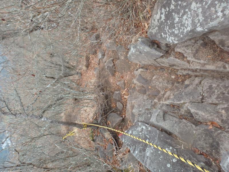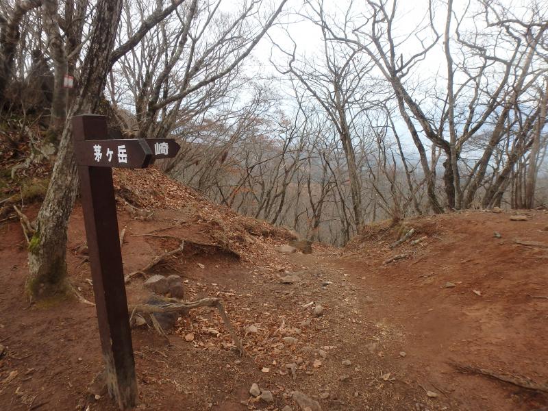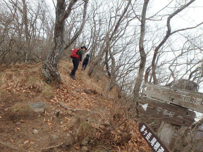 尾根歩きとなり、大きな岩を登る箇所あり。