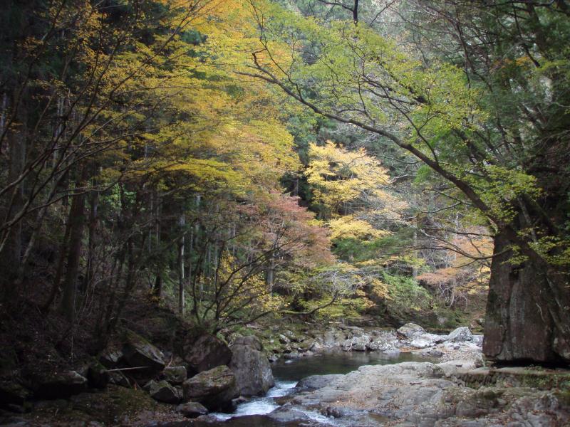帰路はそのまま道を下って駐車場に戻りました。秋の赤目四十八滝は日没が早いので、長坂山トレッキングコースに行く方は早朝に出発した方が無難です。
