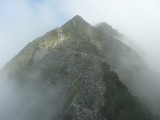 からはきれいに見えた、楽しみにしていた奥穂方面の景色が見えませんでした(残念)。