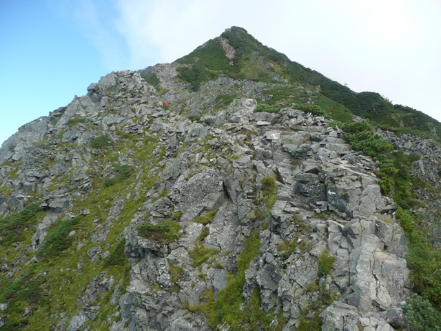 西穂山荘から独票手前までは尾根沿いで特に危険個所はありませんが、独票手前は手を使った岩場に