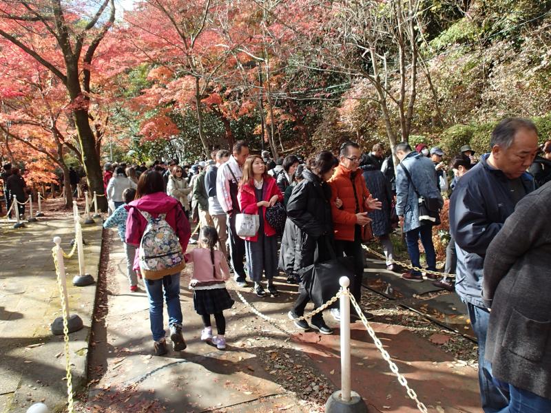 平日とはいえ小春日和の紅葉の高尾山。すごい人出。ケーブルカー、リフト共に行列、30分待ちの表示。前回は一切並ばなかったのに。