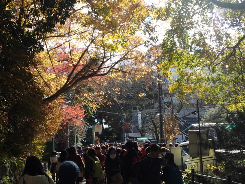 清滝駅(エコーリフト山麓駅)前の、綺麗な紅葉とたくさんの人。
