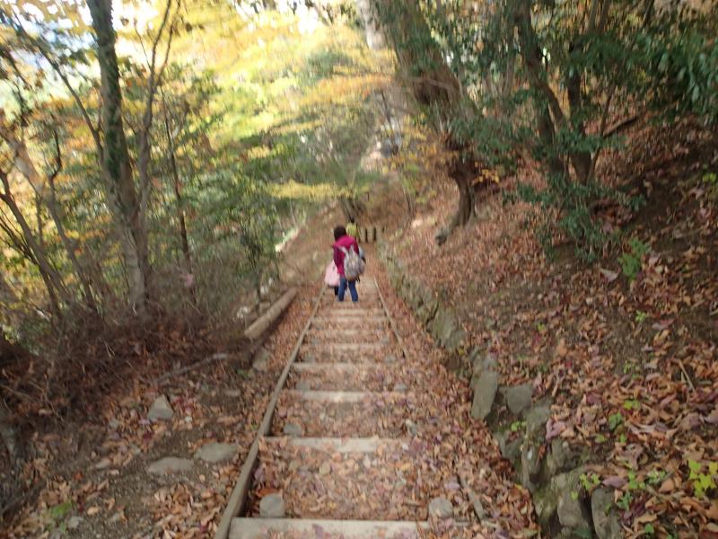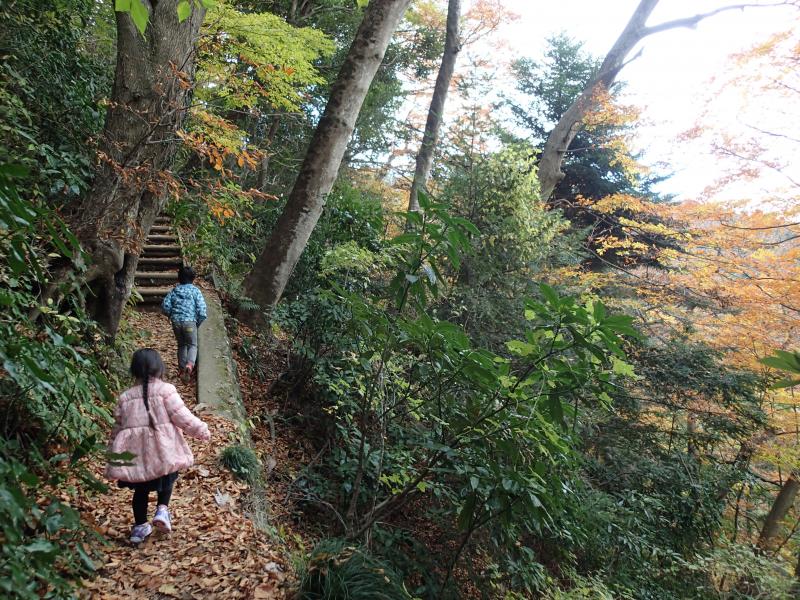 所々、切り立ったやや狭い道があったり、子供にはやや段差の大きい階段もあります。このすぐ先で4号路に合流。