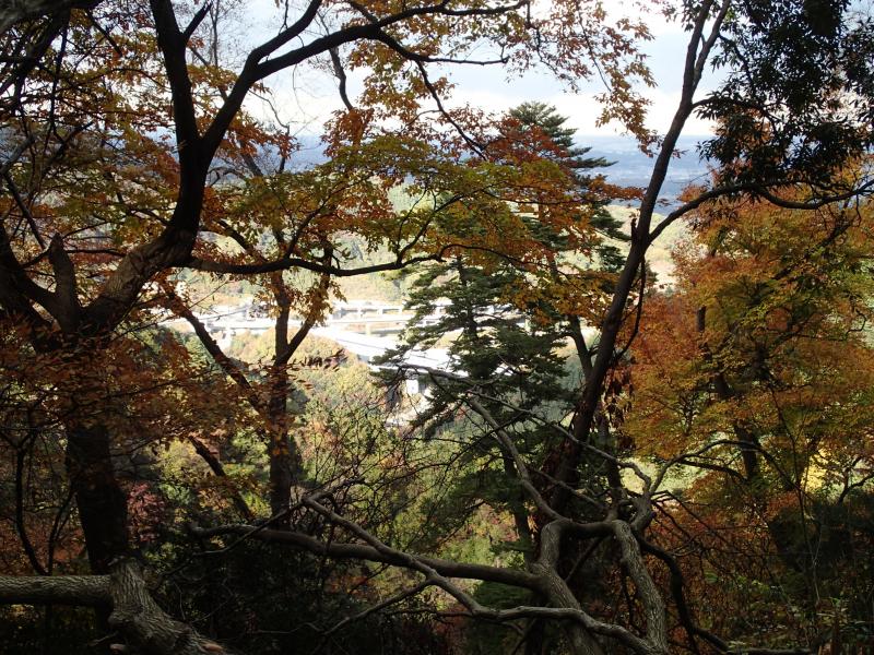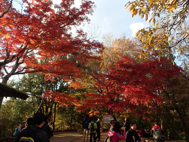 頂上から少し進んだ広場にも見事なモミジ。時間の関係で紅葉台(約10分)は次回に持ち越し。