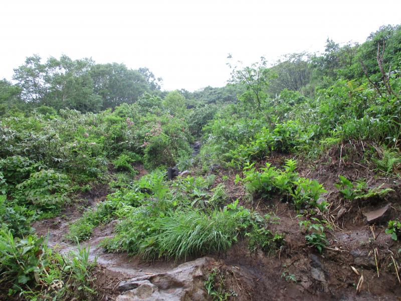 - スキー場を直登する場合も、登山道を行く場合も、足場はぬかるみが酷く歩き辛い。