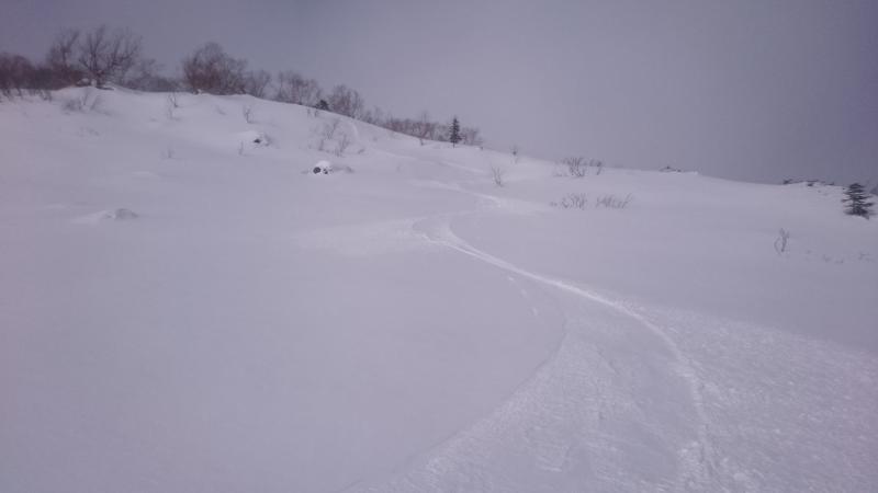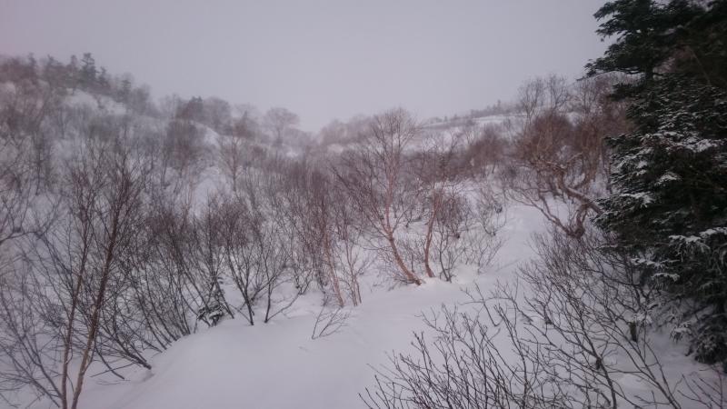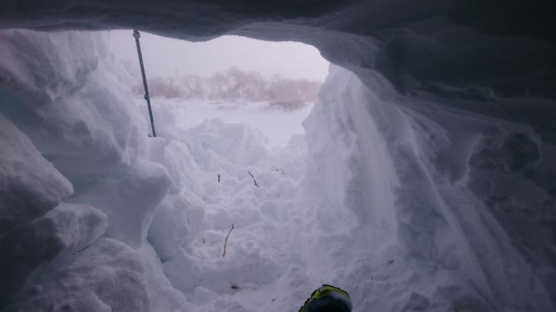 雪洞掘って様子を見ましたが、快方に向かい気配なく。あきらめて下山しました。