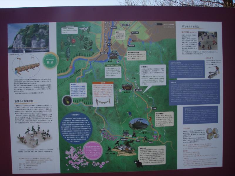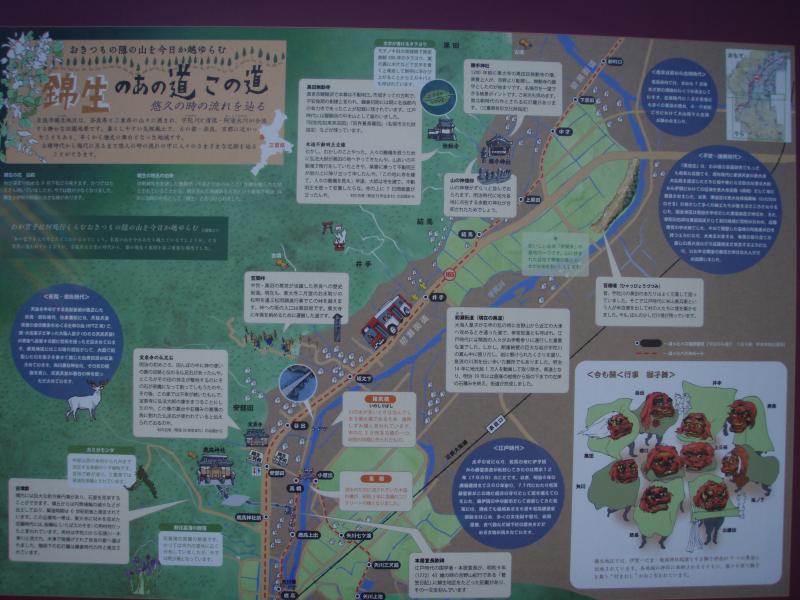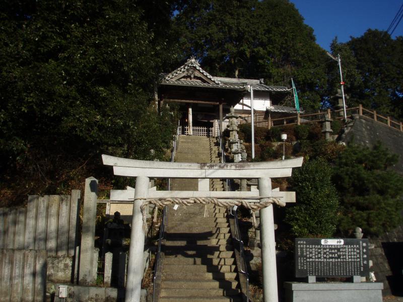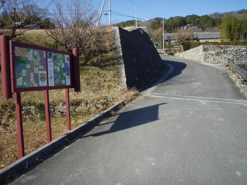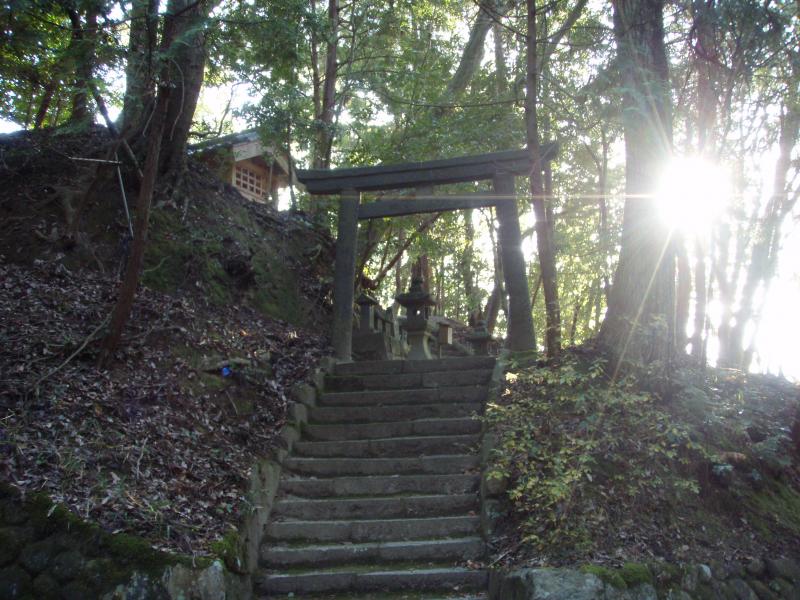 バス停・中才から出発。坂の手前に「錦生のあの道この道」という大きな案内板があり、この周辺の歴史や見所などを分かりやすく説明しています。約10分で勝手神社に到着。本殿の横からは名張の町や麓に柏原城址のある竜神山などが一望でき、ご来光や夜景スポットとしても知られているようです。