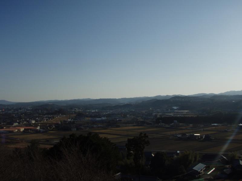 道なりに歩いていくと、複数の電波塔が立ち並ぶ茶臼山の山頂へ到着。三角点あり、展望は電波塔の隙間にあり。気温6度。山頂から少し下った所からは、山添村方面が望めます。帰路は往路を戻りましたが、落ち葉の下に隠れている石で足を挫きそうなので、「正忍記」に書かれている「摺り足」を用いて下山しました。
