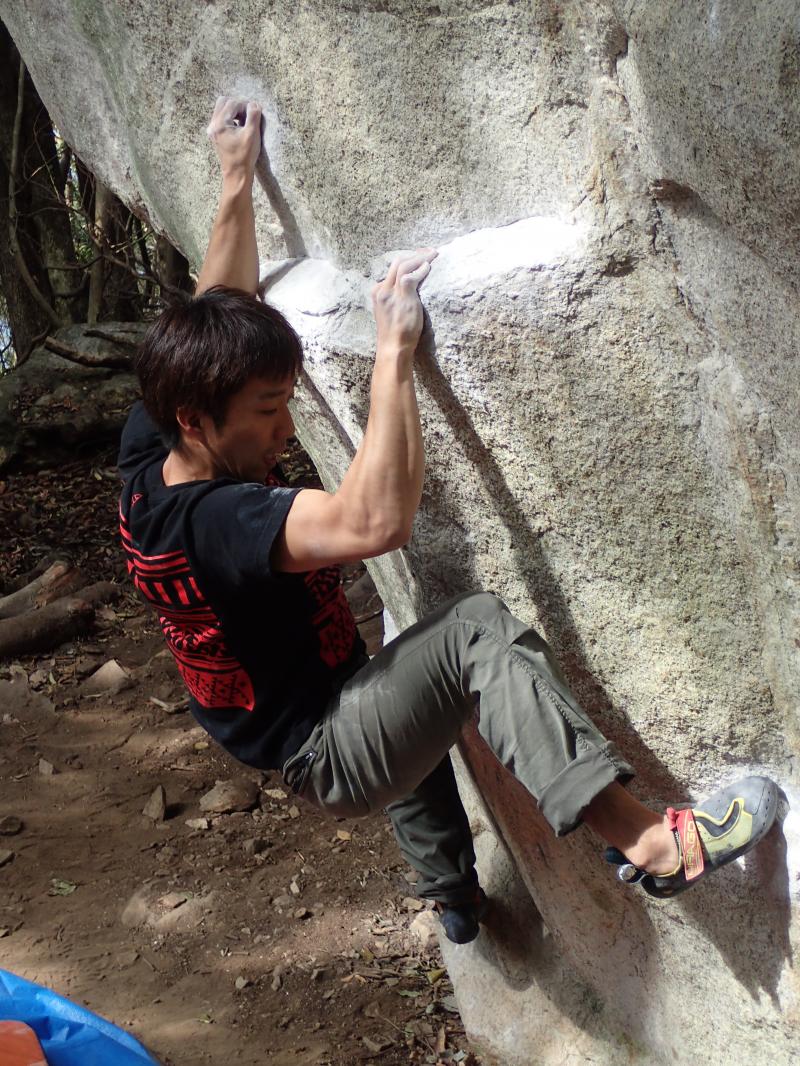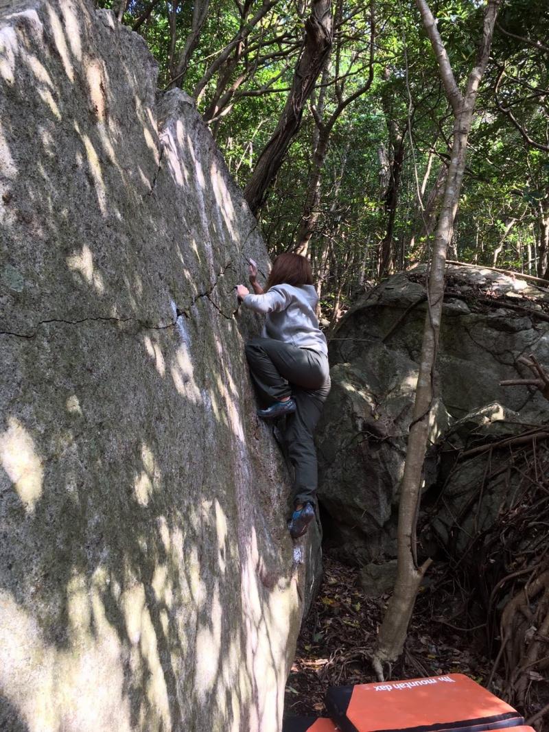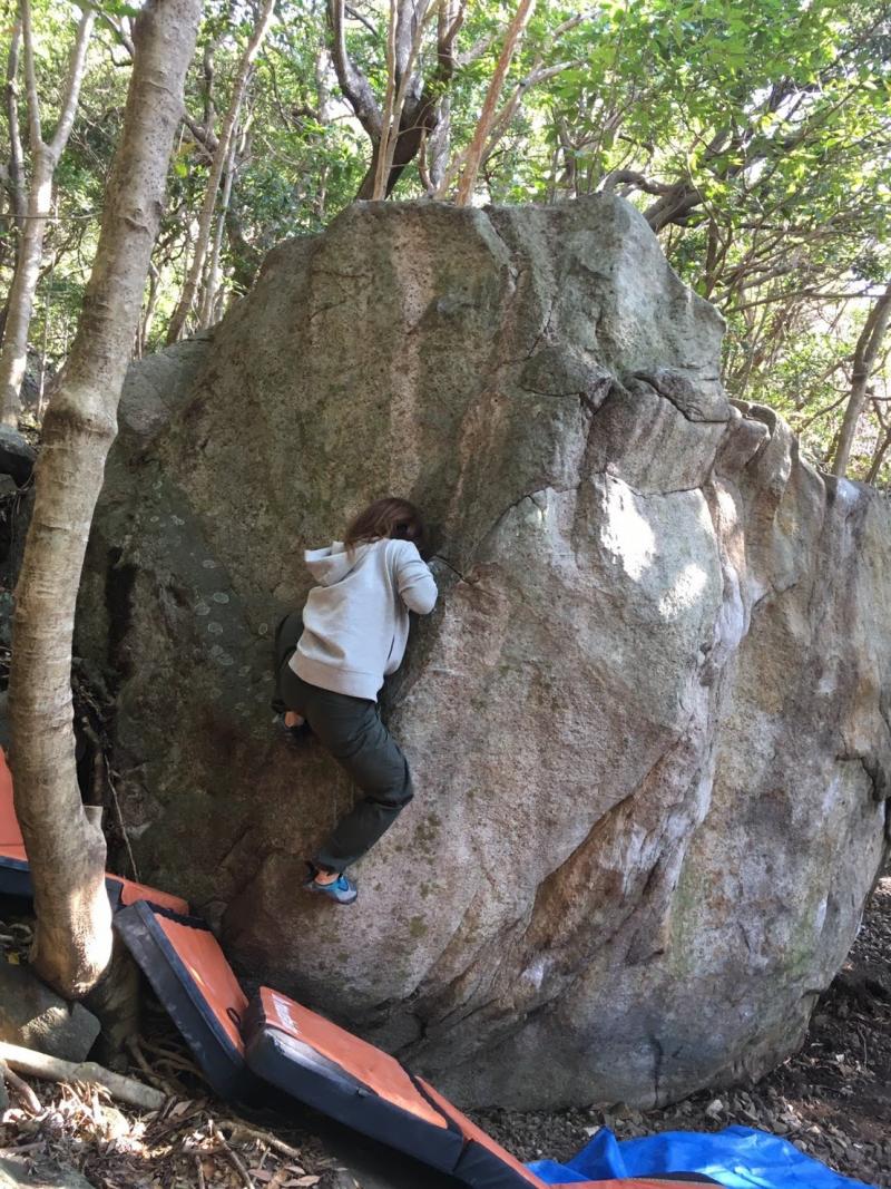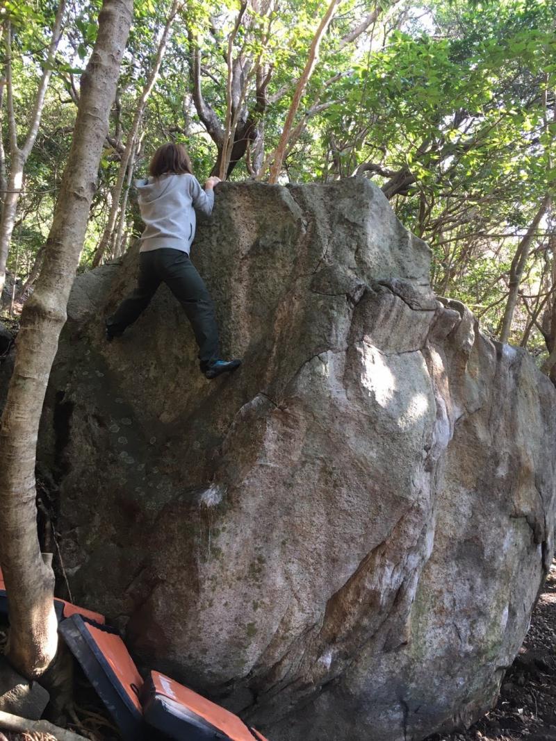 もうだめ、と私の登れる課題をやりに、ドラッグ岩や、ハローベイビー岩へ。