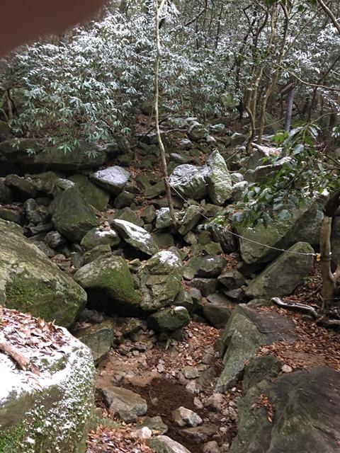 アイゼンを履く必要はないのですが、岩が濡れて嫌な感じです。