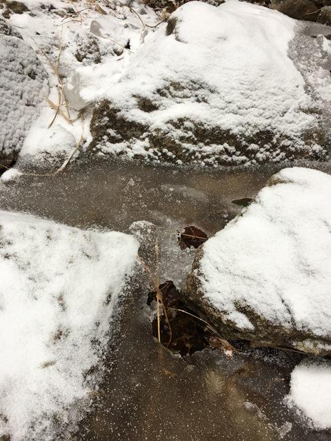 しゃばしゃばと音を立てて流れていましたが、流れの左側は下まで凍ってます。