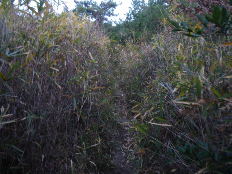 ②しばらく、低い笹の道で藪気味に覆いかぶさる箇所もありますが、しっかりした登山道です