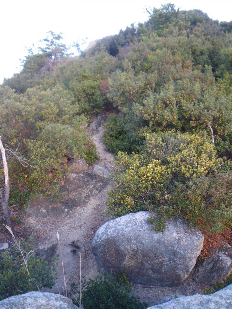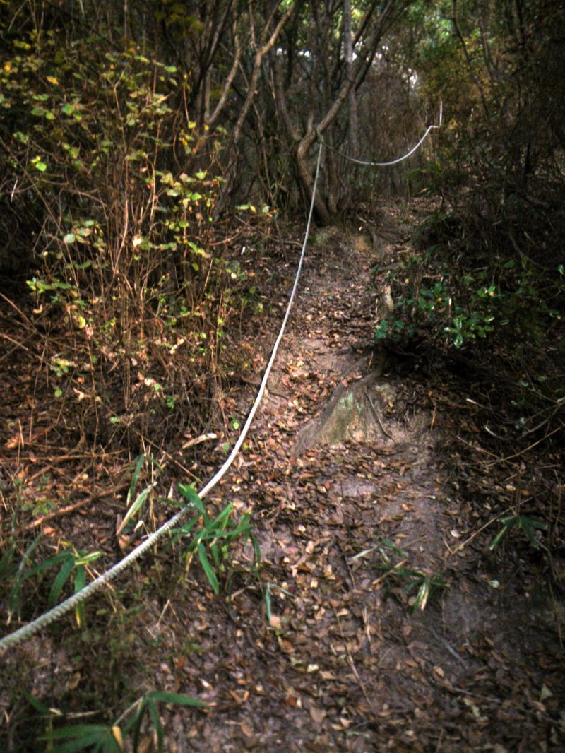 ③徐々に、傾斜が強くなりますが、最初の岩場手前で残置ロープ部分があります