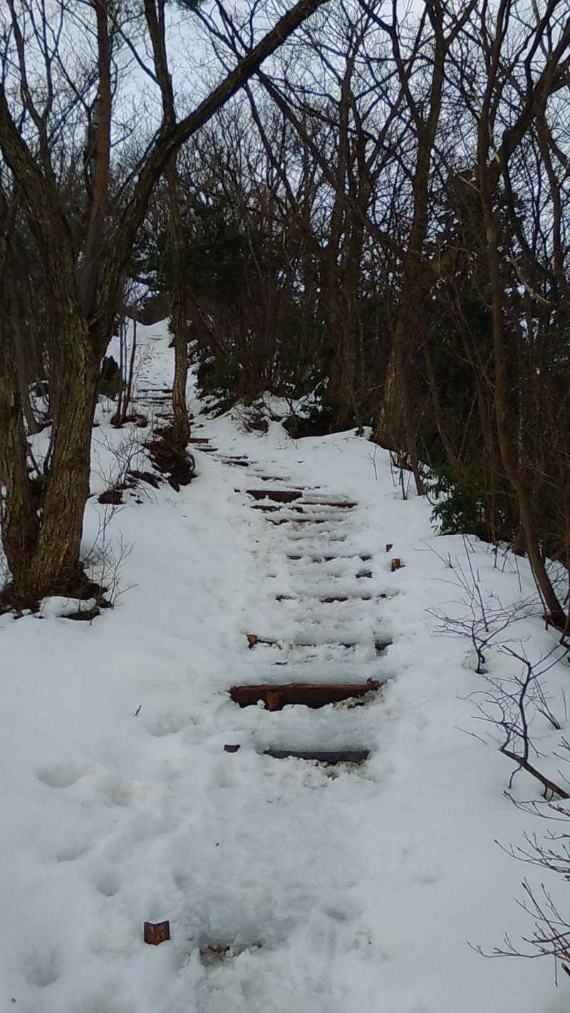 - 2合目付近より雪が残っており、3合目からはずっと雪上を歩きます。