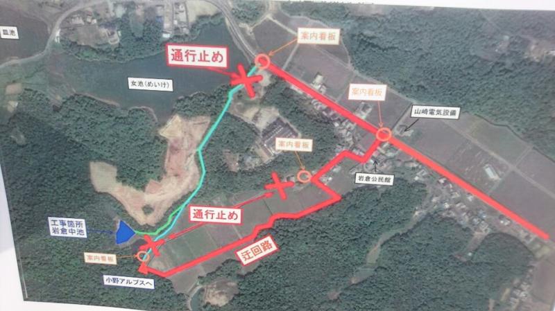 女池からの入り口は工事で通行止めです。案内板がありますので、従って歩けば迷わず登山口までたどり着きました。