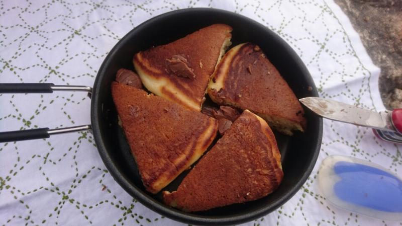 ホットケーキは余熱でチョコを溶かして