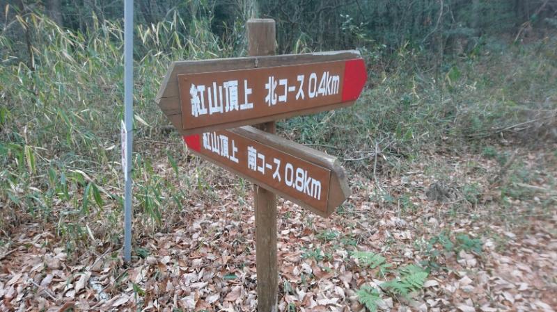 紅山山頂南コースが、あの岩場を登るコースです。