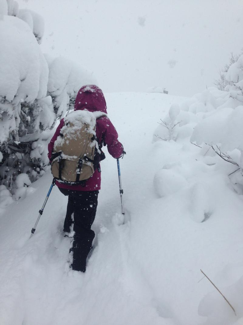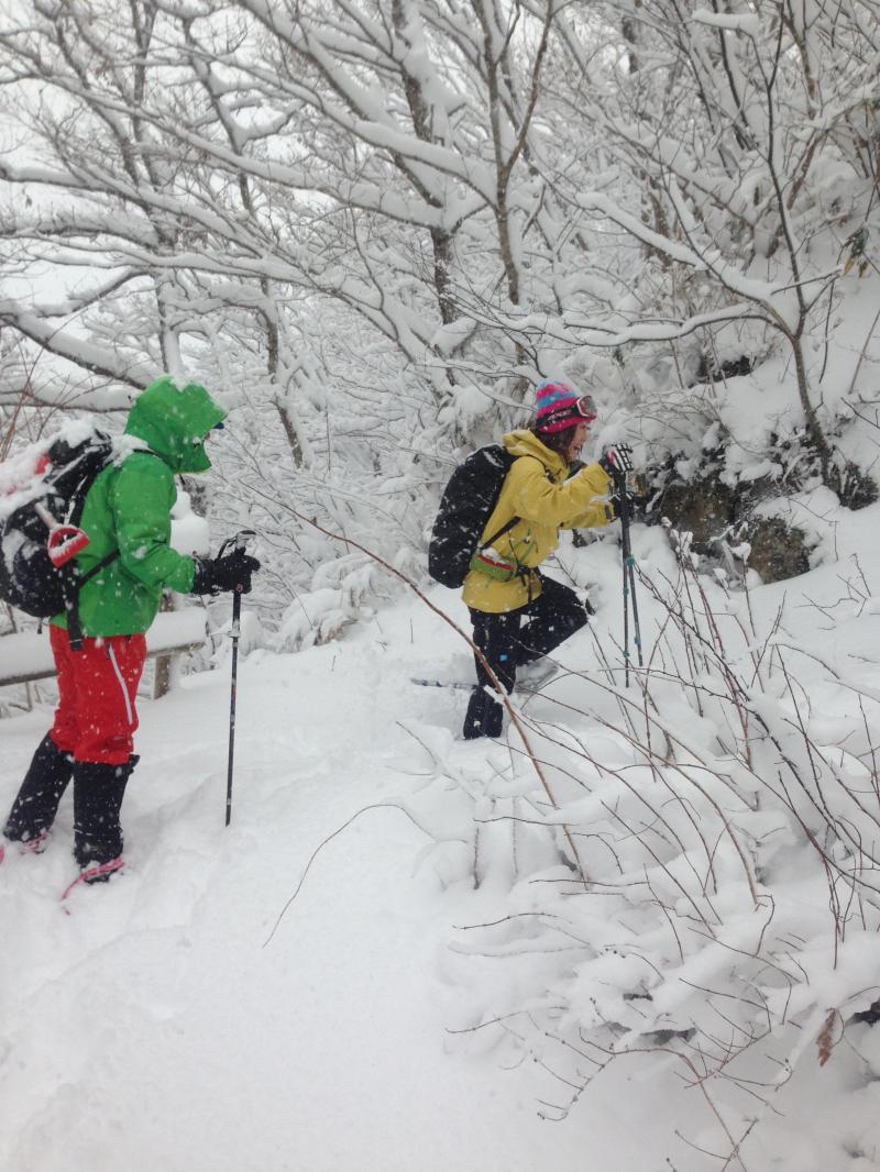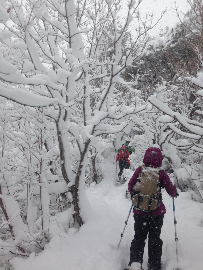 もちろんストックにはスノーリングを装着して、服装は冬山レイヤリングでした。これから登る際は万全の装備と服装で楽しんで下さいね。