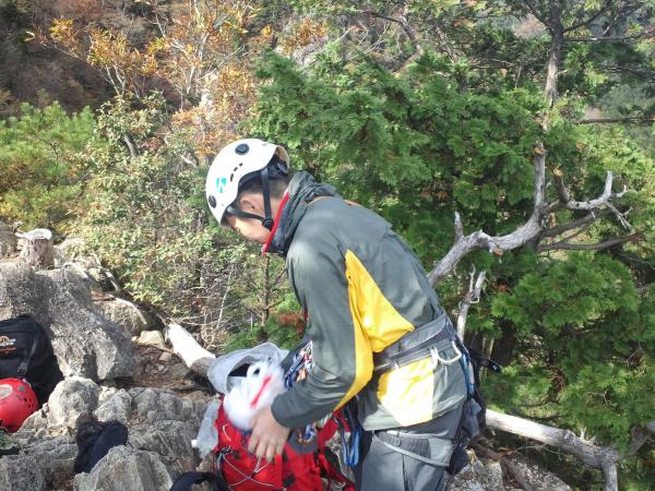 気を取り直し、一旦地蔵岳の山頂に出て、懸垂下降で取り付まで下降