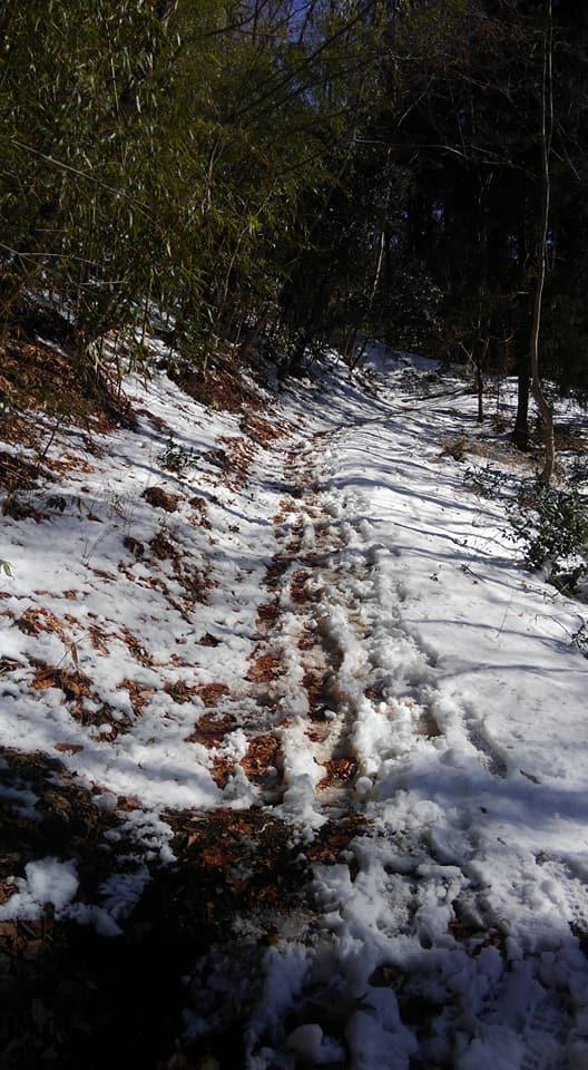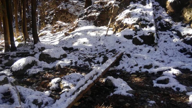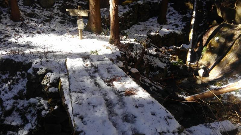 登山道は雪や氷が混ざっておりますので、装備は軽アイゼンとストックを携行してください。