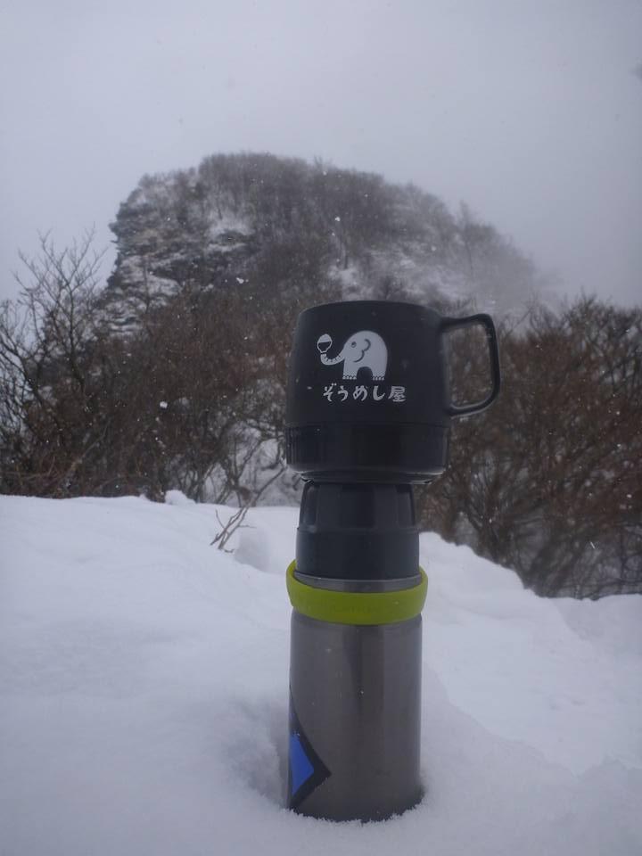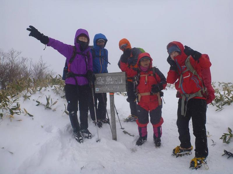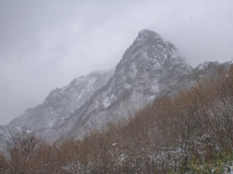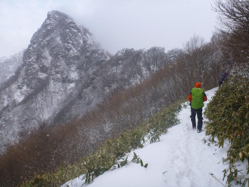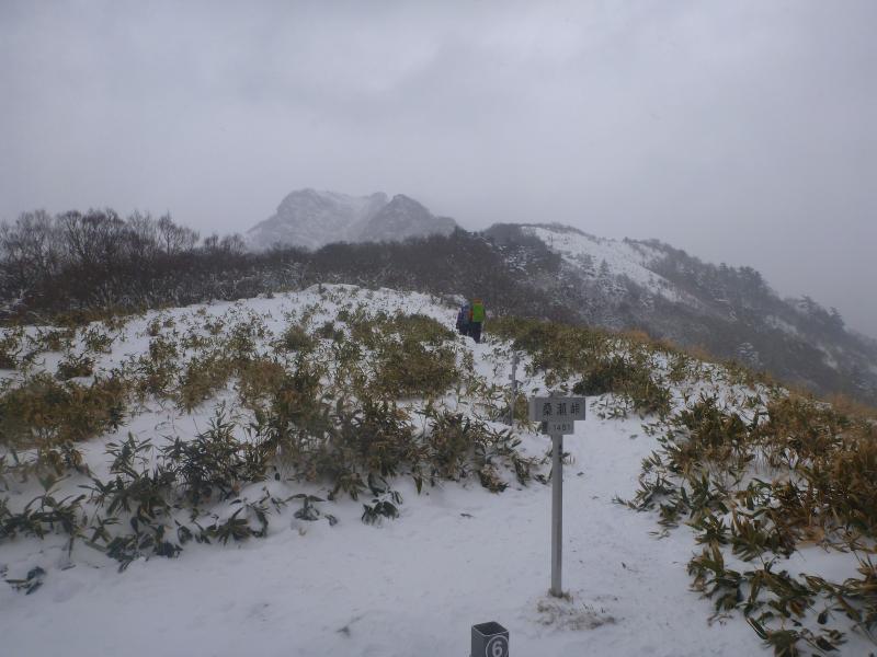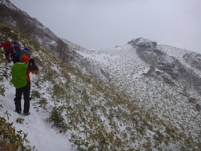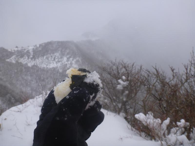 山頂は寒いので、写真撮って下山しました。鞍部でお昼ご飯。ただお昼取ると逆に寒くあわてて下山しました。梯子が連続していて、アイゼンをひっかけないように下山も丁寧に下ります。