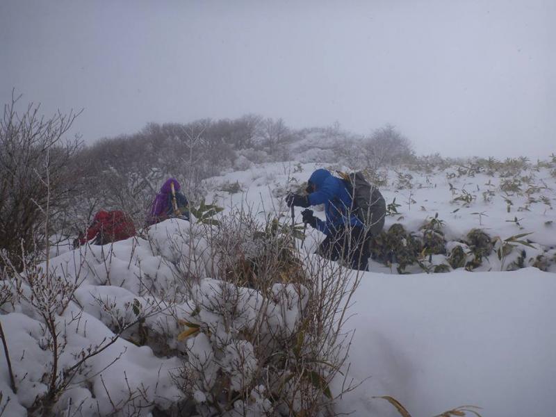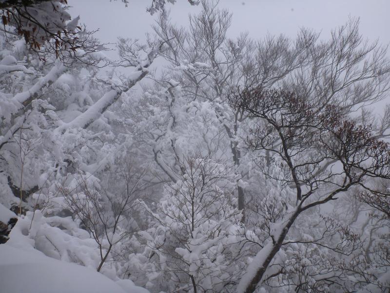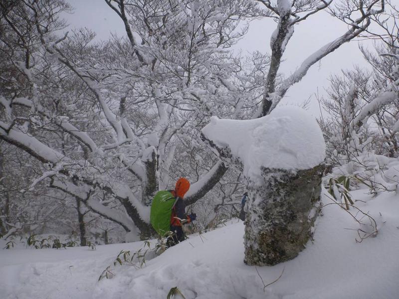時に青空も見えました。きらきらの霧氷には会えずですが、ブナの自然林の雪景色が非常に美しかったです。