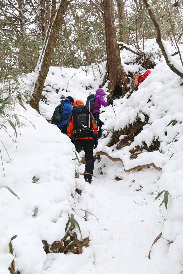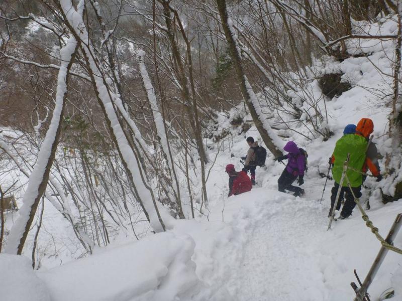 桑瀬峠までも、少し登りあり、桑瀬峠からは、階段が続き、一か所、登りで少し下るロープ場所が少し危ないので、積雪多いと滑落危険場所です。慎重に通ります。