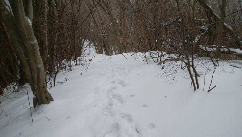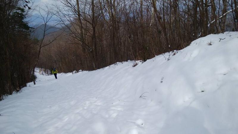パート③ 阿讃山脈縦走路は 新雪のふかふかです。丁度膝下位。小さなアップダウンで