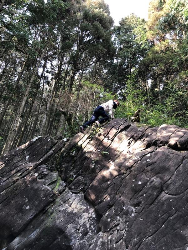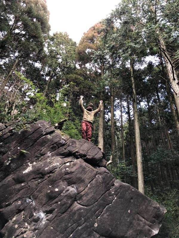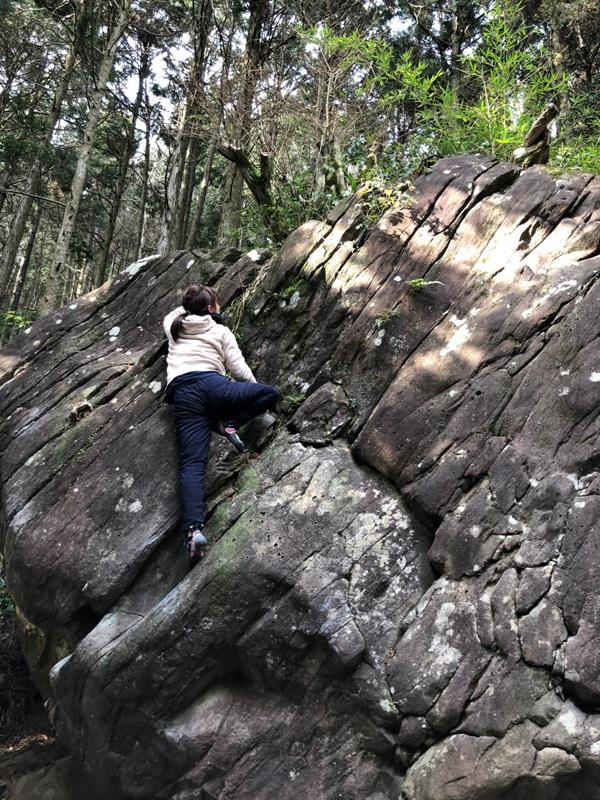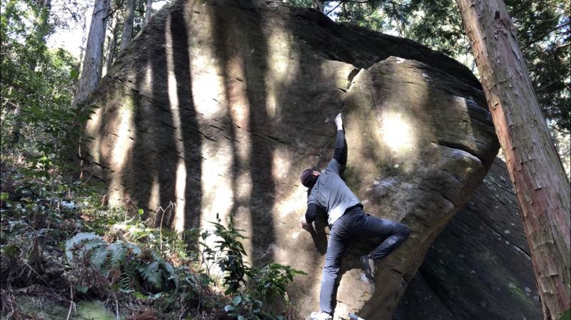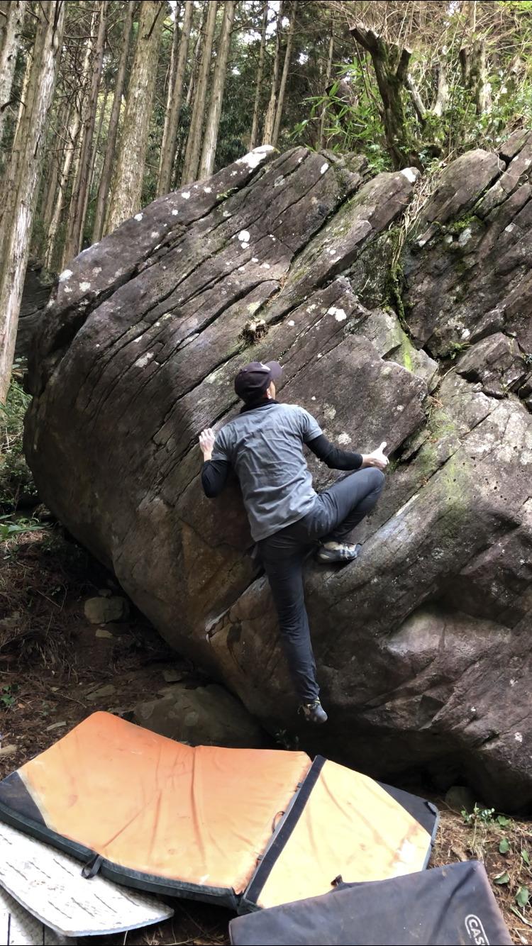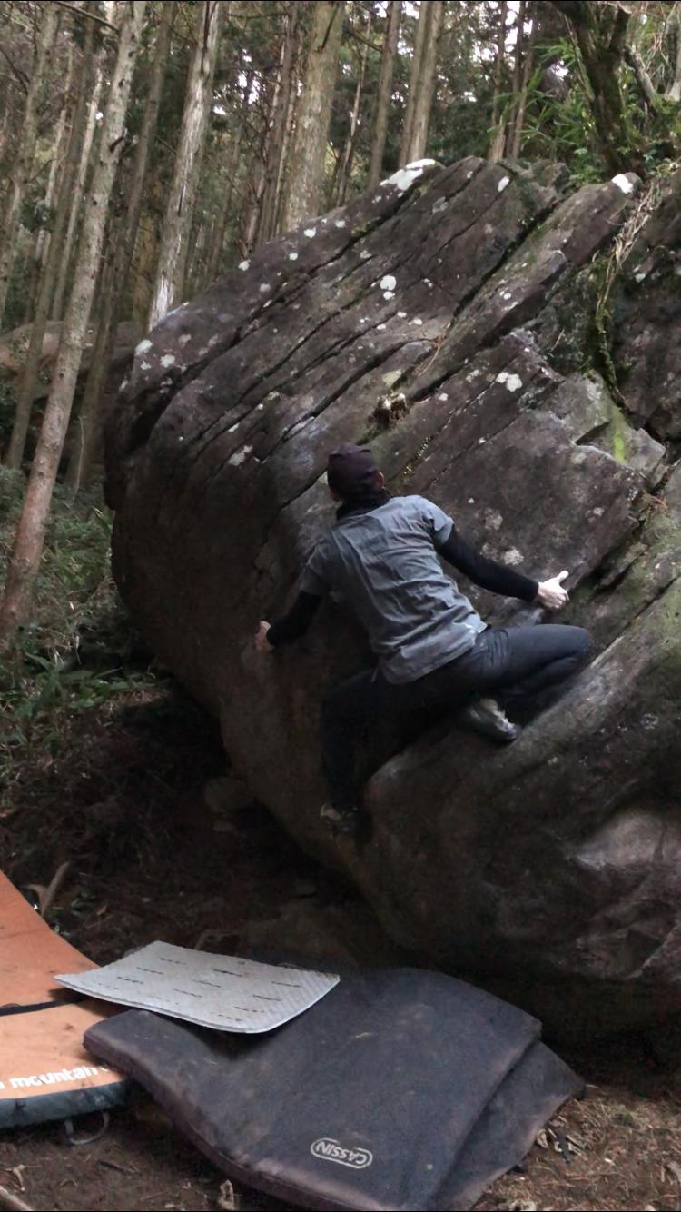 耳取峠のボルダーは輝石安山岩という岩質で特に珍しいものではありませんが、横方向に層状に溝(しわ?)が入った特異な形状のボルダーが多く、岩の傾き具合によってはその溝が斜めだったり縦になったりで、非常におもしろいです。