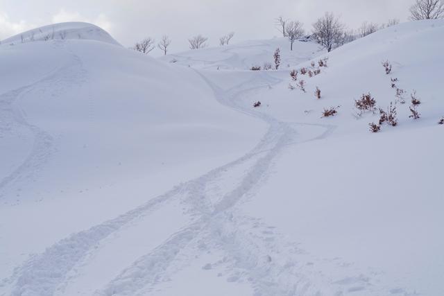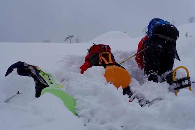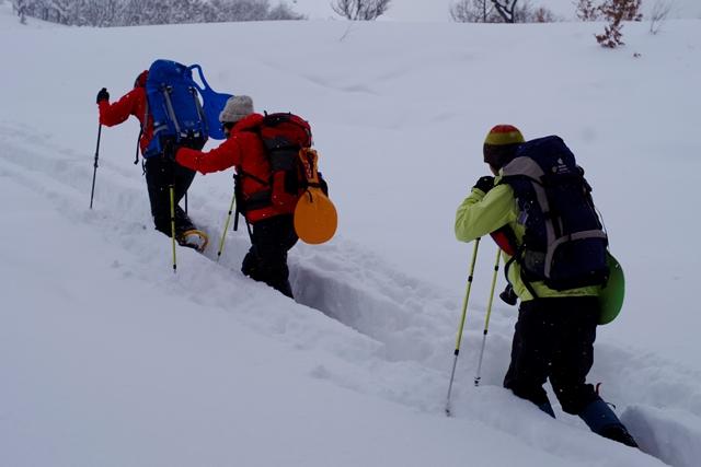 ルートがあってもスノーシューかワカンを履いていないと、膝上くらいまで埋まるので