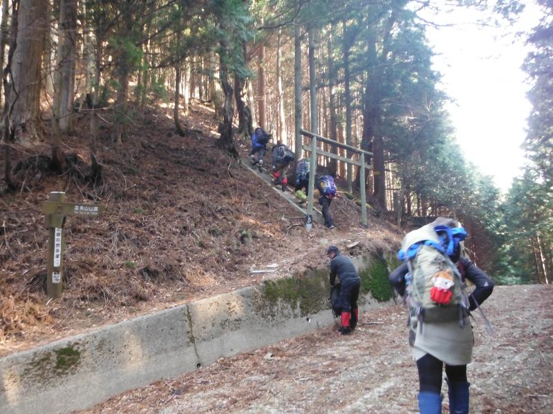 - 登山口(60)→小峠(20)→分岐(60)→頂上(100)→平野バス停