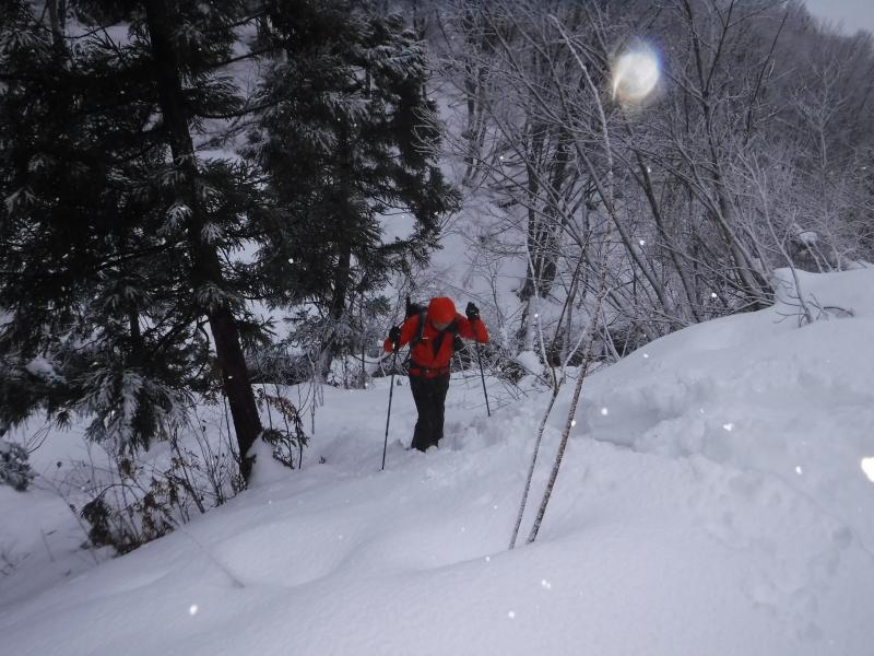 雪庇で有名な守門岳でしたが、あいにくの曇天。12月ということもあり雪が重く体力を奪われました。