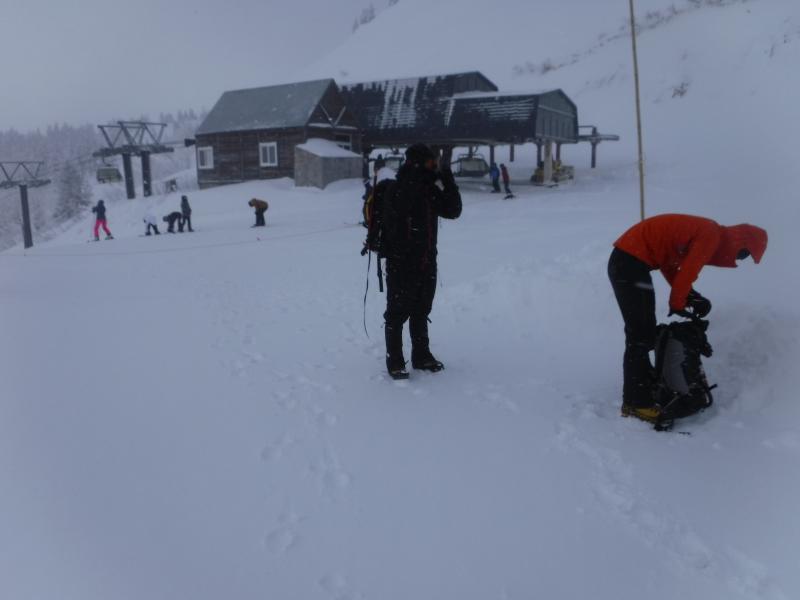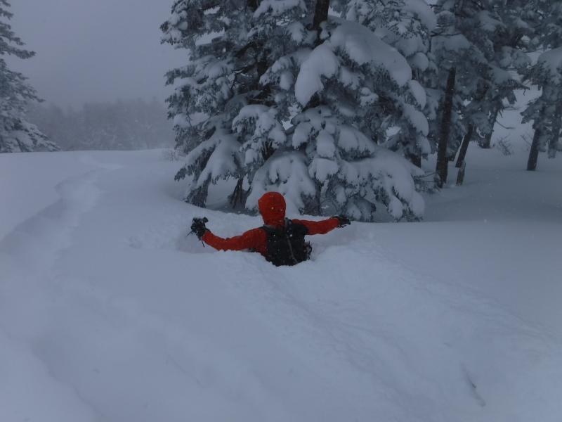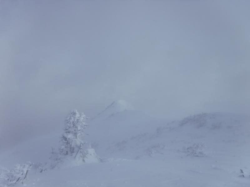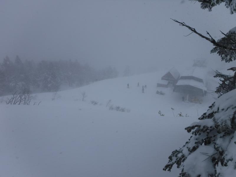 - 降雪後のためノートレースでした。深い所で腰近くまで雪があり、寒波の影響で風が強く視界不良のため引き返しました。
