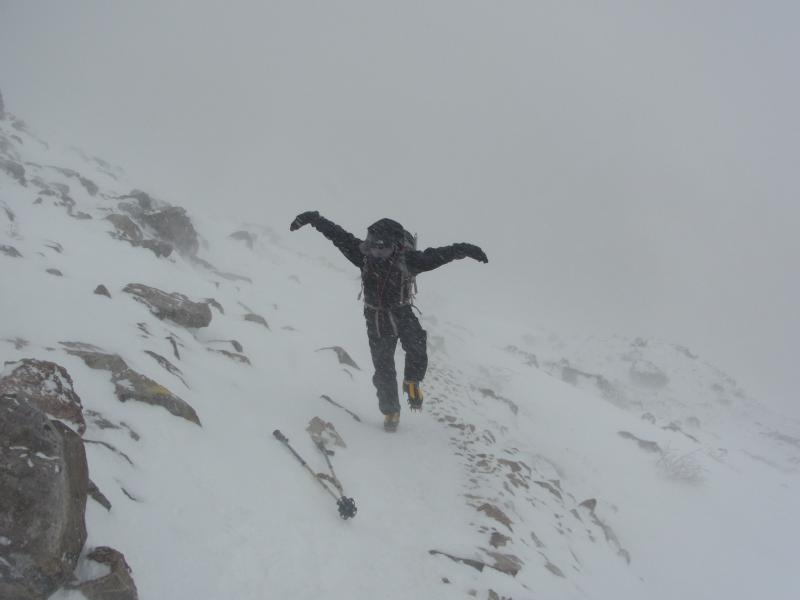 強風にさらされると当たり前ですがさむいです。しっかりとしたグローブのレイヤリングやバラクラバは必需品です。寒さに弱い私はバラクラバをしていても頬がいたくなりました。反省。