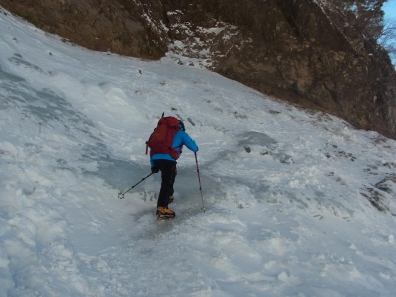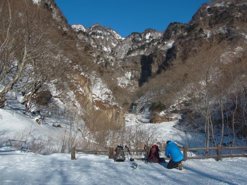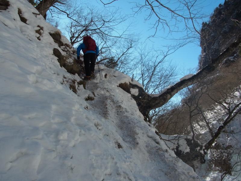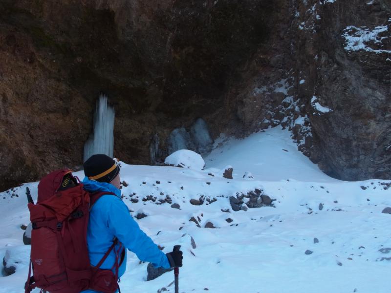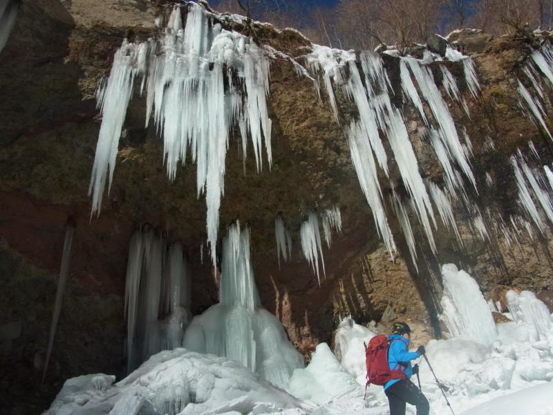 滝壺まで行くのは12本アイゼンとピッケル装備が望ましい。