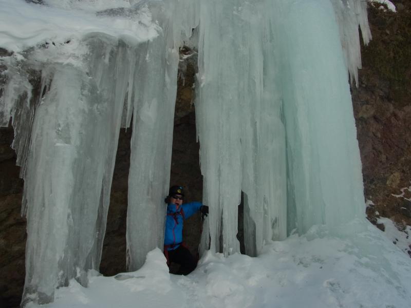 いつまでも眺めていられます。気温が上がると落氷もありますのでヘルメットはかぶって行ってください。