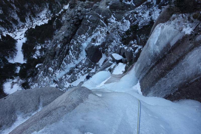 膝から気が付かないうちに流血していたので4ピッチ目はビレイ地点で待ってました。