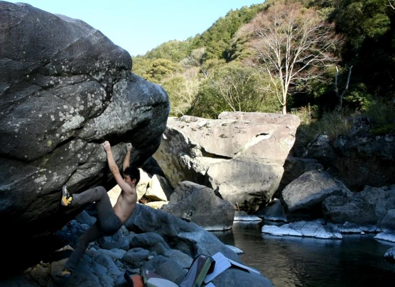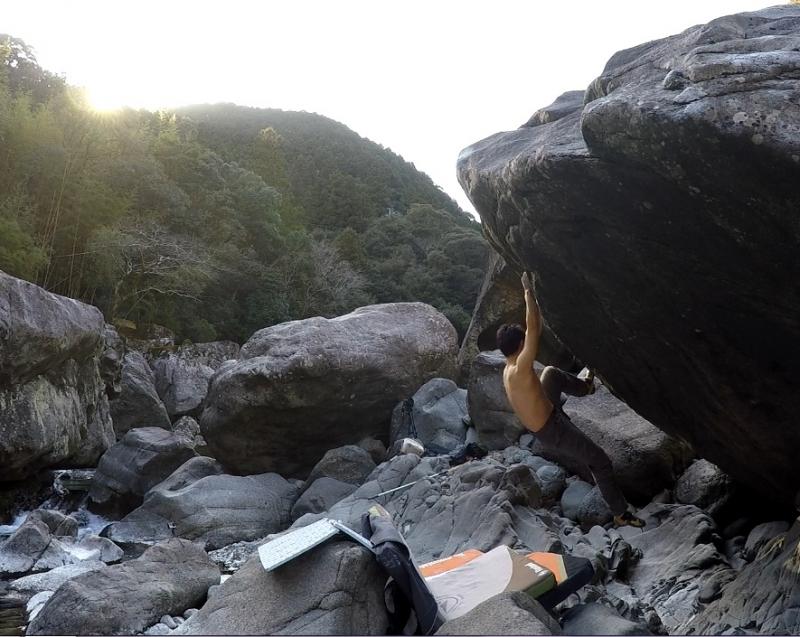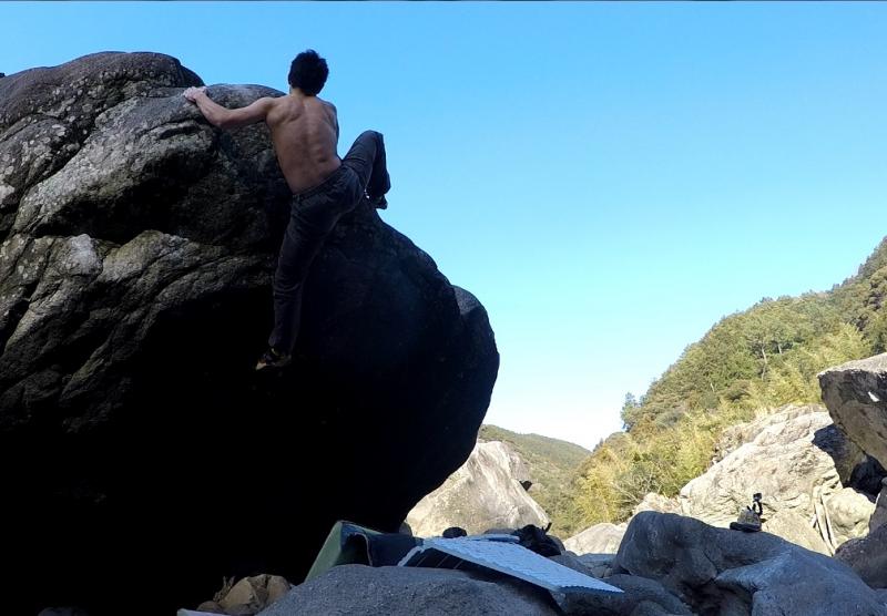 「旅人」登れたのですが後日スタートが間違っていたことが判明しました。正しいスタートは下部のスローパーをマッチしてSDスタートだそうです。また今度やり直してきます!