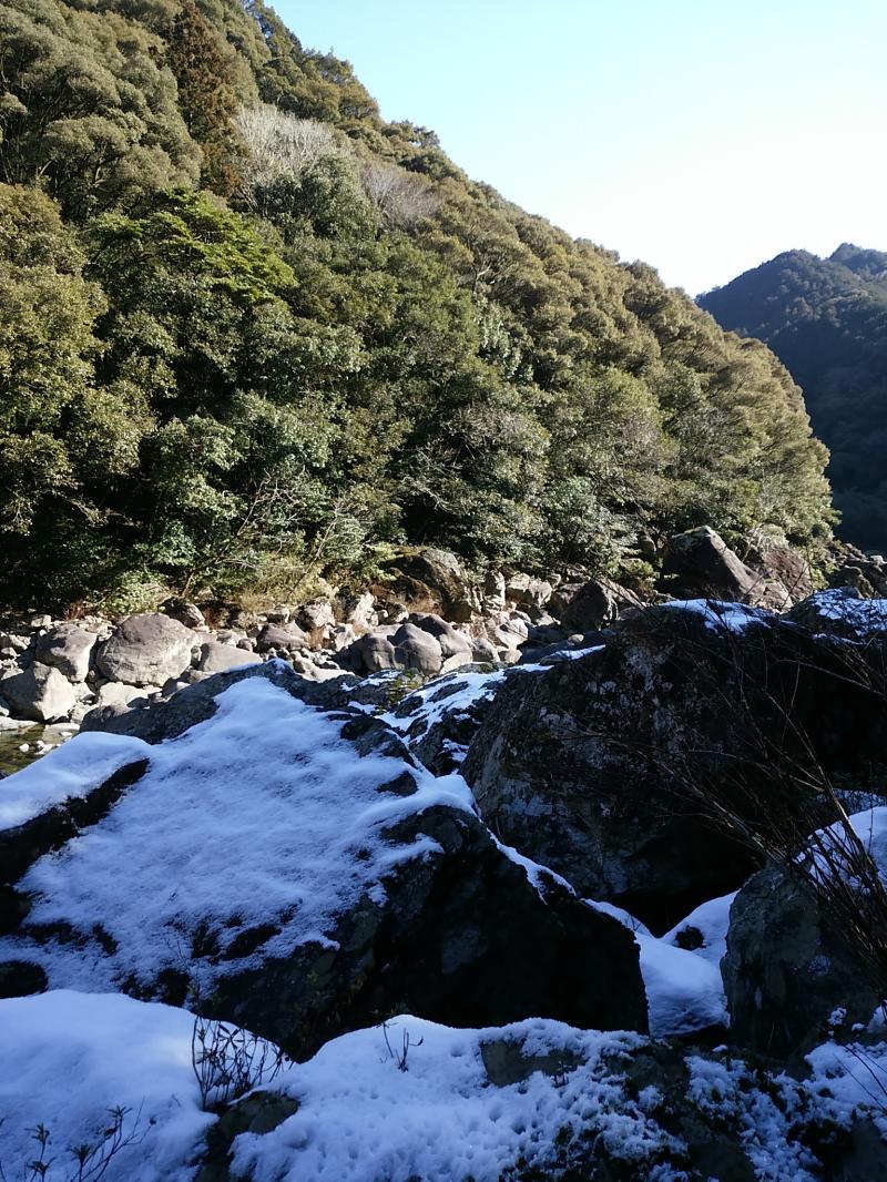 アプローチの岩の上に雪が積もっていて恐ろしく滑るアプローチとなりました。