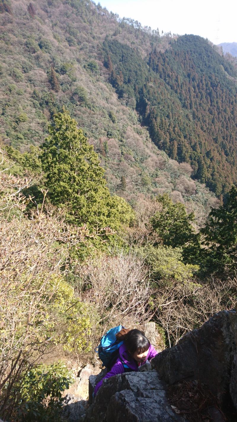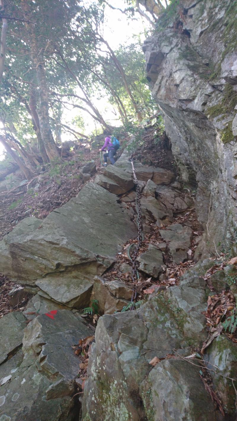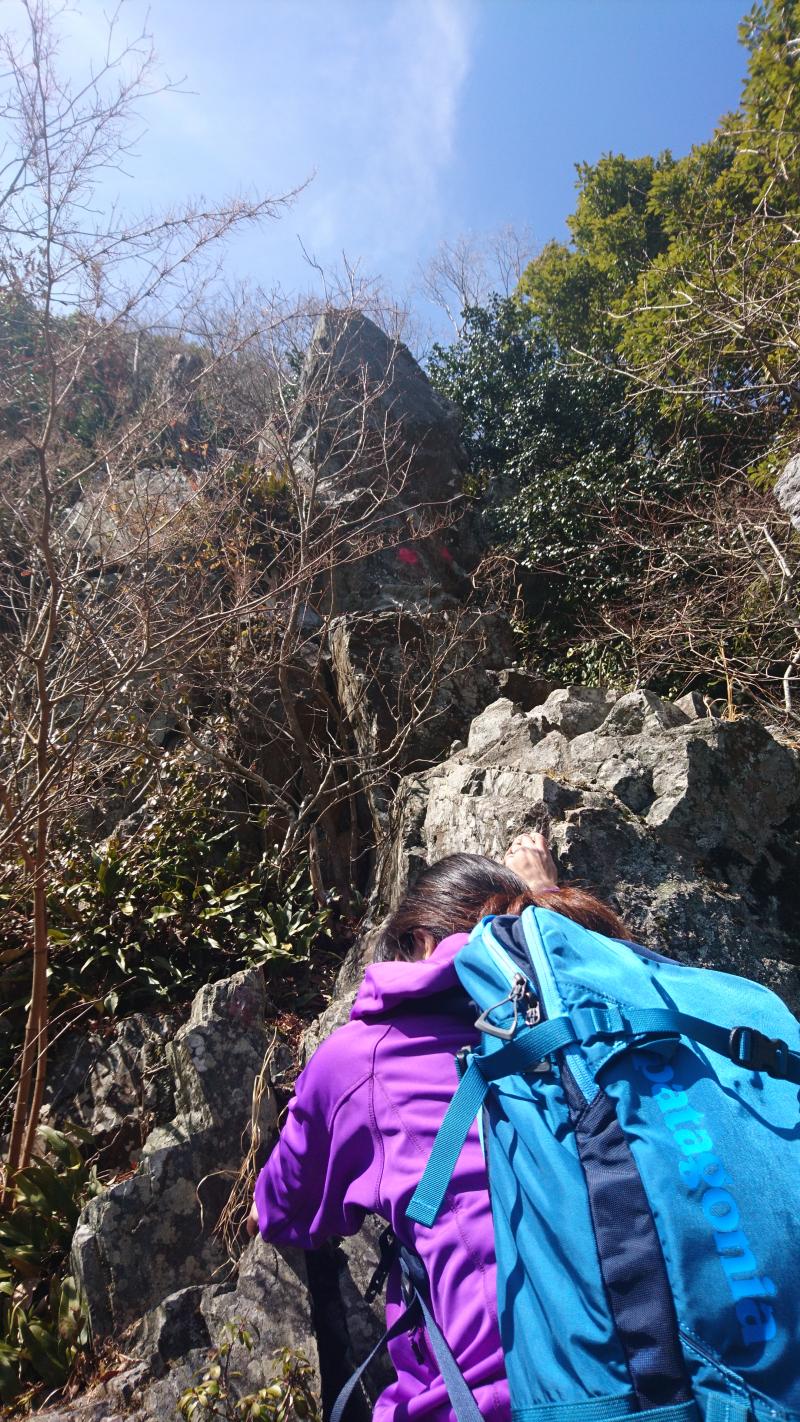 護摩壇を過ぎるといよいよ岩場の連続です。鐘掛岩、小鐘掛岩と続きますが、どれも非常に危険です。各行場ともエスケープルートが設定されているので、危ないと感じたらそちらに迂回しましょう。