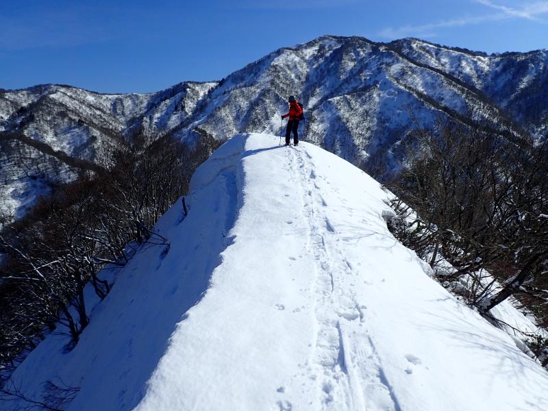 コマタまで戻り周回ルートで剣龍峡へ。焼山までは急なアップダウン、その後のなだらかな林の中ではルーファイに一苦労、抜け出して一安心と思ったら今度は薮漕ぎ、思ったより時間がかかりましたが、ふとマンサクの黄色が目に入り、小さな春を目にして気持ちがほんわかしました。
