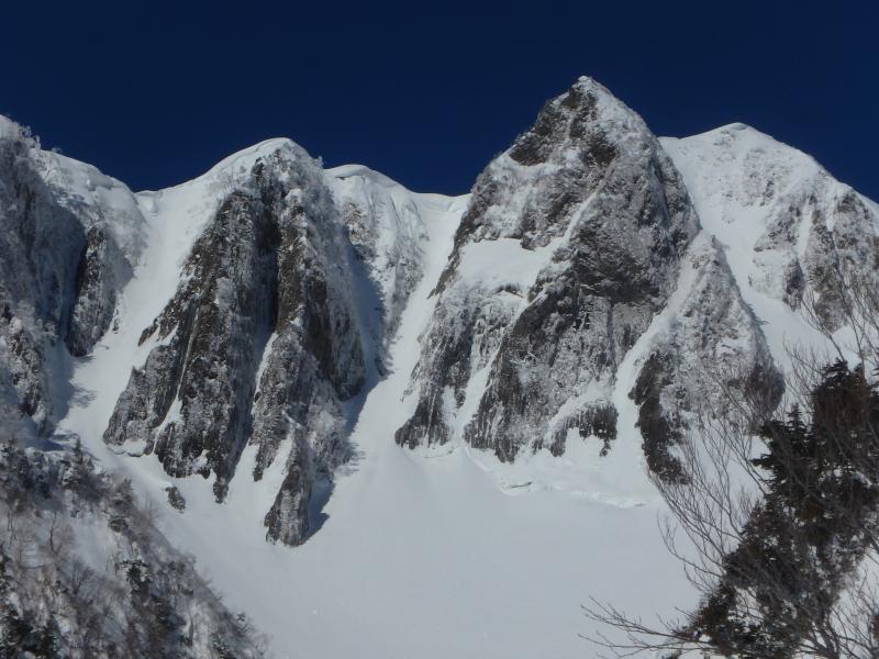 - 荒菅沢通過後笹平に至る尾根~山頂までは要アイゼン。