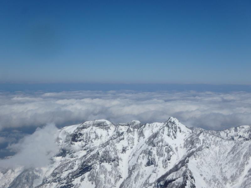 這いつくばって高度を稼いでいくと笹平に到着。360度の絶景に別世界のような雪原で疲れも吹き飛びます。