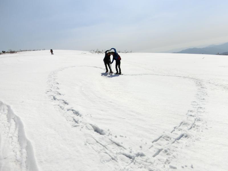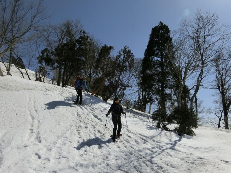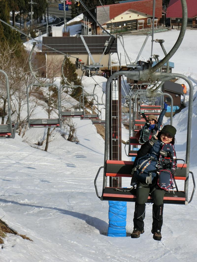 - 雪が少ないとはいえ、地面はほとんど見えなかった。登山道は所々雪が深い所もあり、スノーシューなしでもなんとか歩けますが、スノーシューを履いたほうが歩きやすかった。6本爪以上のアイゼンは必携です!