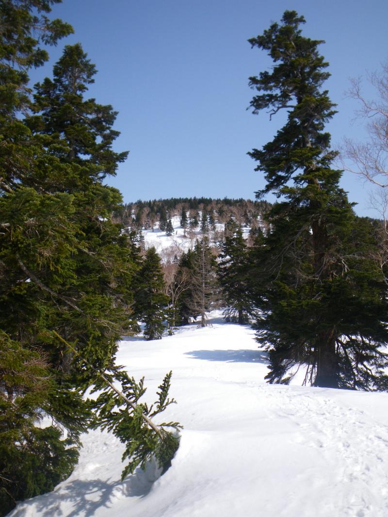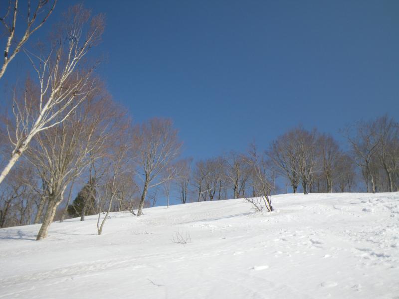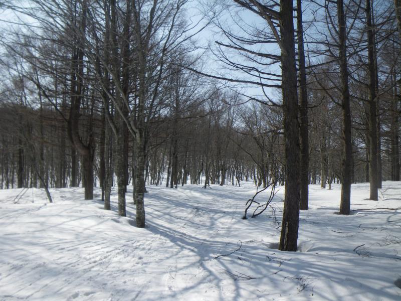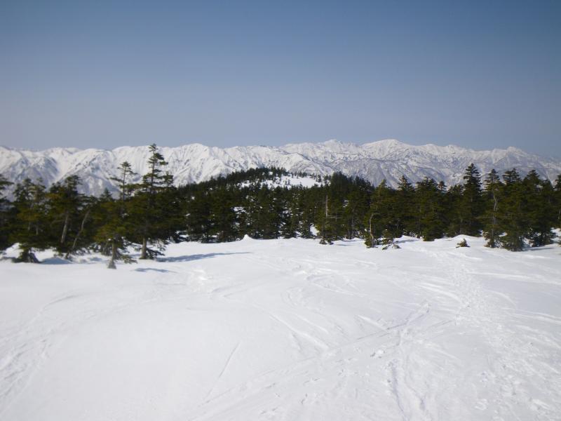 また帰雲山から先は樹林帯の隙間から白く輝く白山の北方稜線がなんともきれいな光景で元気がでますが、さらに何も遮るものもない山頂からはそれがはっきり見え、その逆方向には遠く御獄・乗鞍・北アルプスの稜線が見え、ここまで登ってきた価値はあります。今日は特にぽかぽかで寝ていたい気分でした。樹氷がついているとまたきれいなんだろうなと思います。