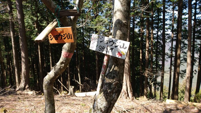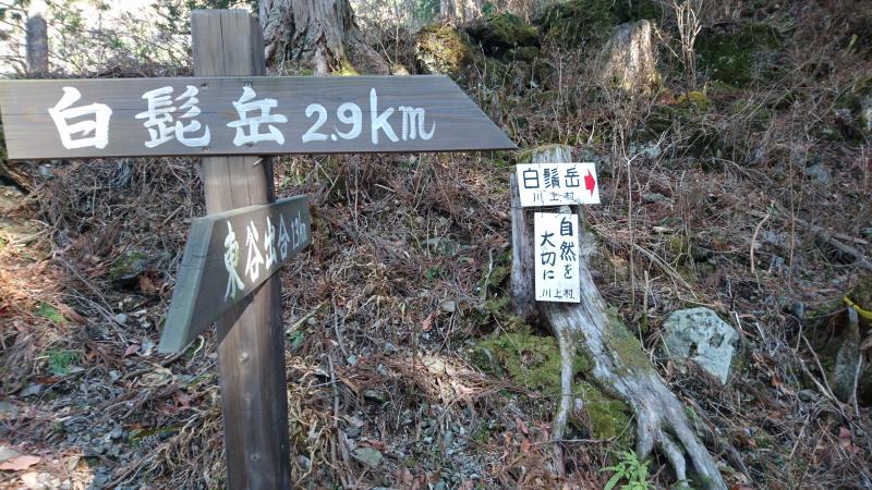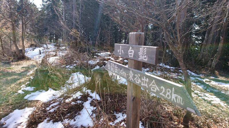 - 東谷出合駐車場(100)小白髭岳(60)白髭岳(60)三角点切原(30)ショウジ山(120)駐車場
