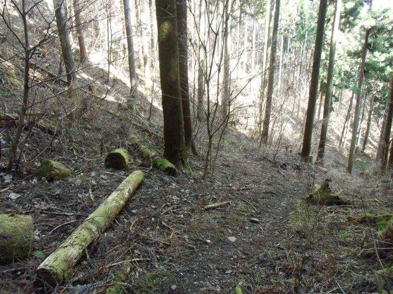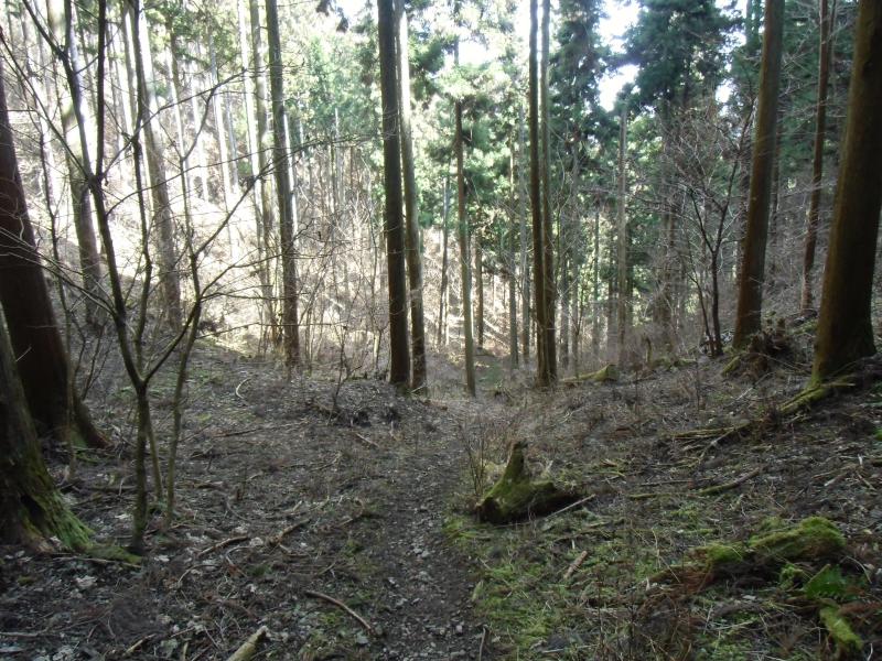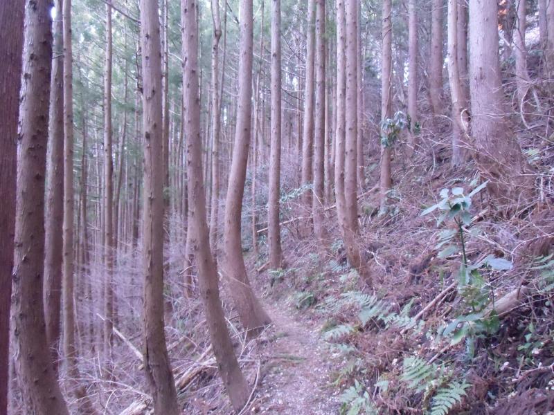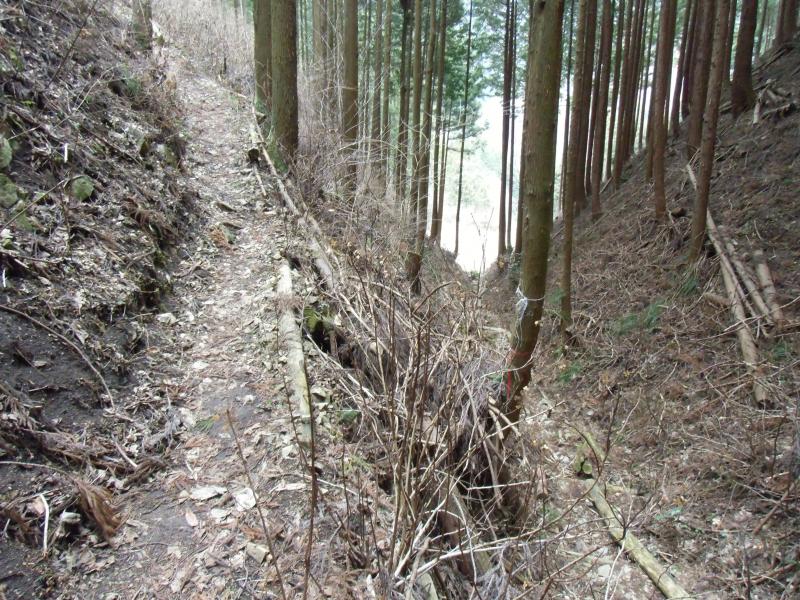 市道山分岐から吊り尾根を数分南下すると、右下に林道が見えるがそこは間違い。進むと北西に行きます。