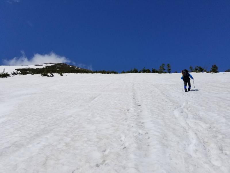 - 登山前日の雨の影響もあり、雪は緩く山頂付近もパウダースノーではありませんでした。