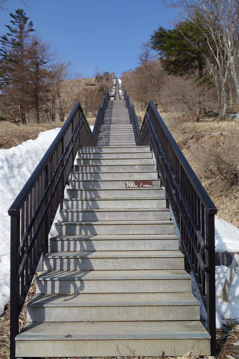 - ○1400段の階段には雪はありません。小丸山から先、丸山方面へ行くと残雪が出てきます。